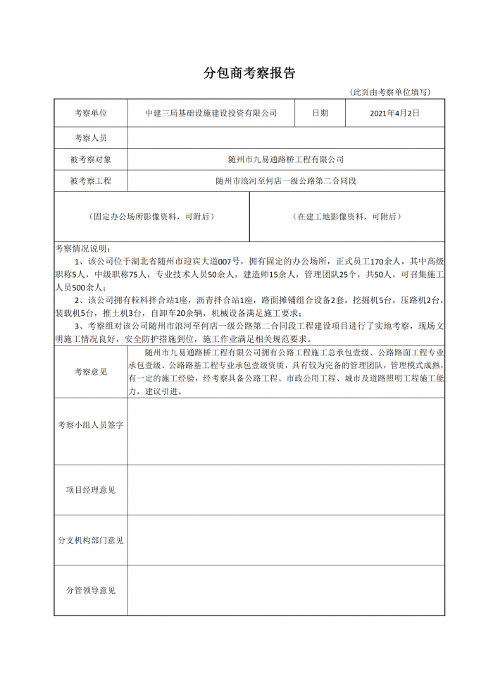 隨州市九易通路橋工程有限公司(考察報告)